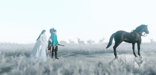 游戏的人物动作造型等也很吸引人,一个酷似亚索的酷毙长发男,一个娇喘练练的柔弱白衣女,一匹嗞咂乱叫的大黄马,是游戏的核心角色。 男主角那叫一个英俊潇洒,女主角那叫一个杨柳依依。